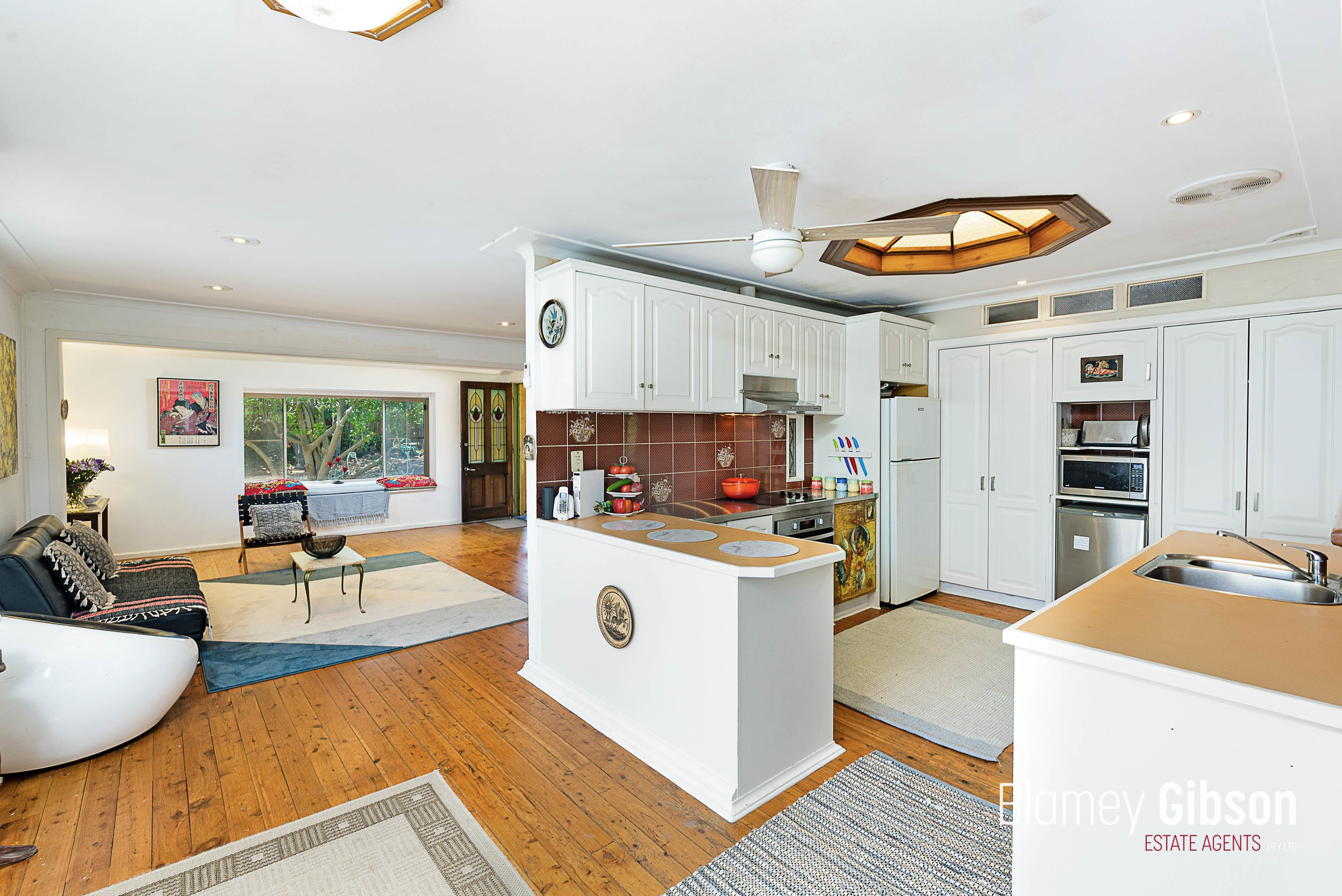 Open plan living flows from lounge to meals, centrally located modern kitchen with new stainless steel appliances, ample bench and cupboard spaces along with ornate hand crafted skylight to kids rumpus or family and covered timber deck alfresco.