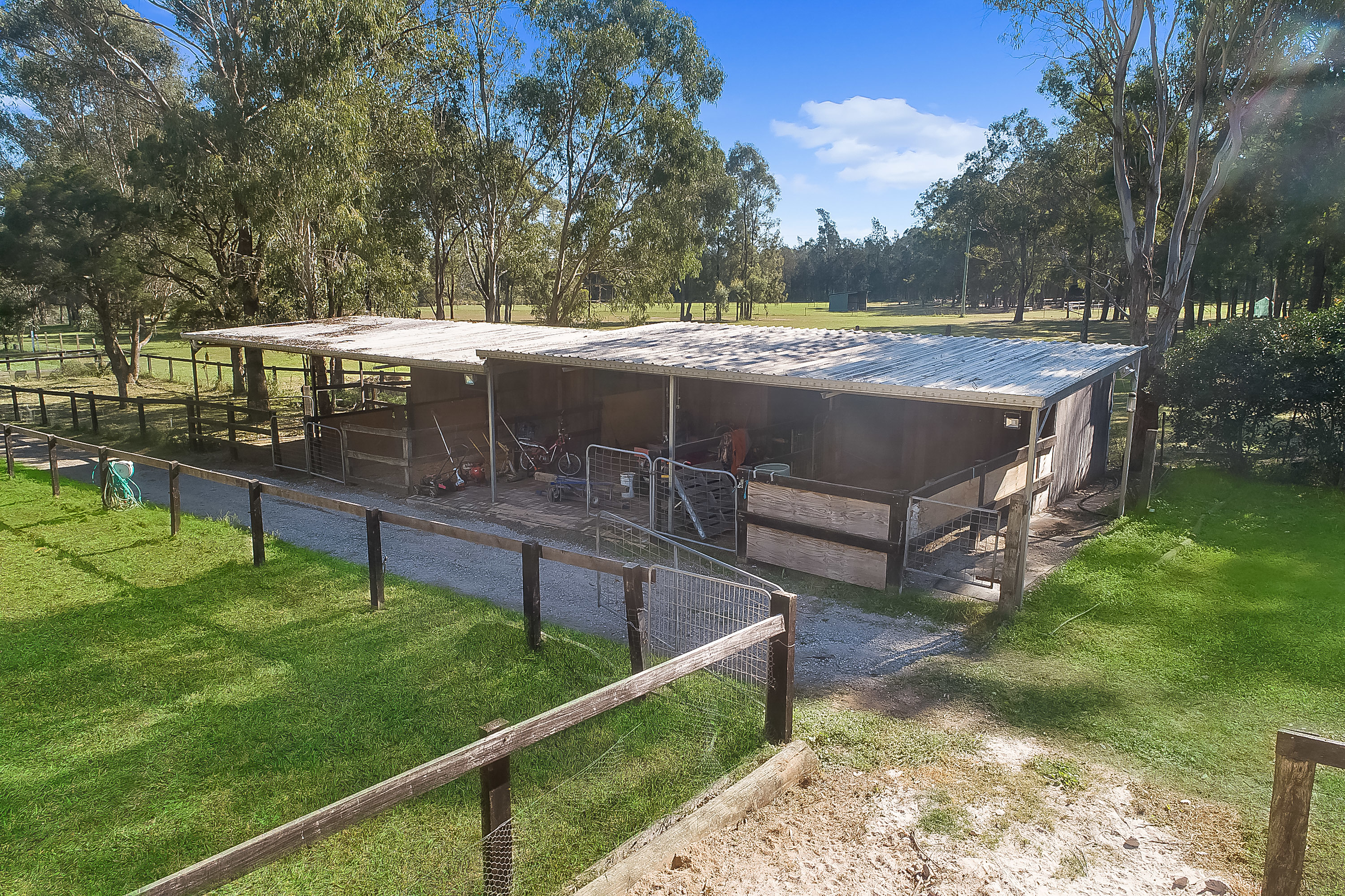 • 4 stables with covered day yards & feed area