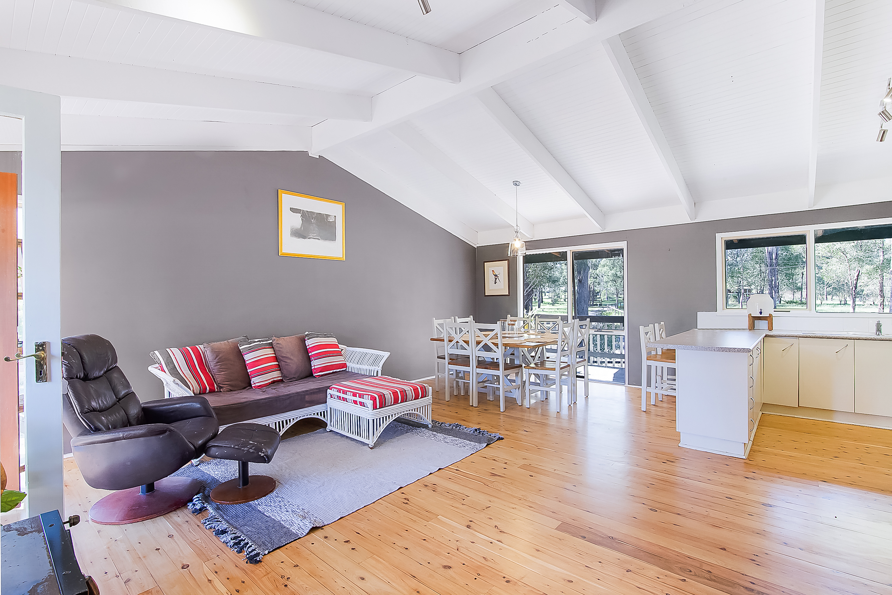 • Open plan kitchen and living area with vaulted ceilings