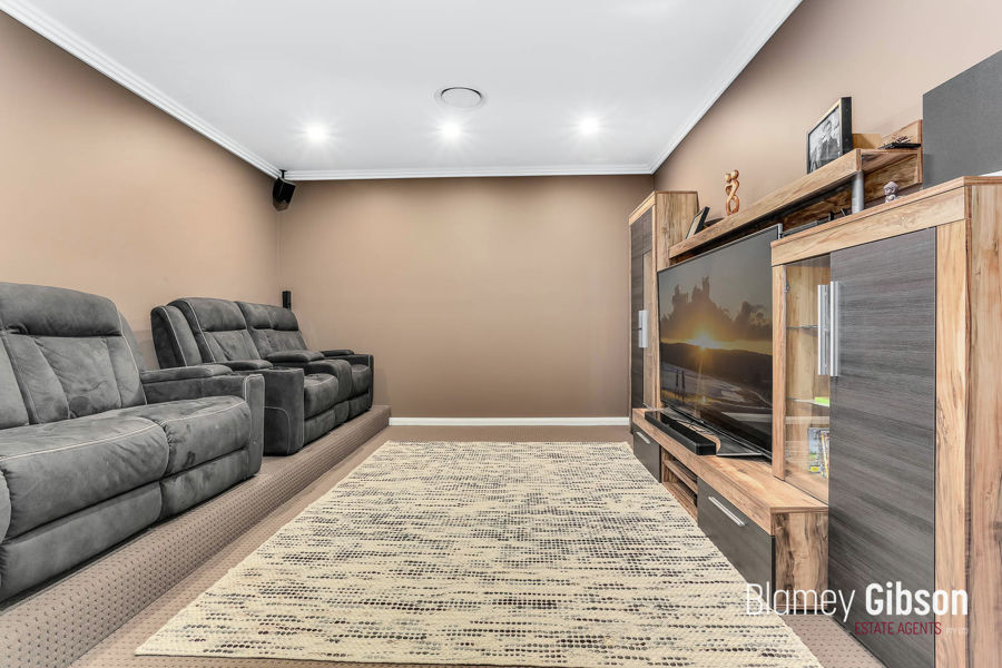 Sound-proofed home theatre with platform seating along with separate teenager's rumpus ensures the kids, both young and old, will always have somewhere to be entertained