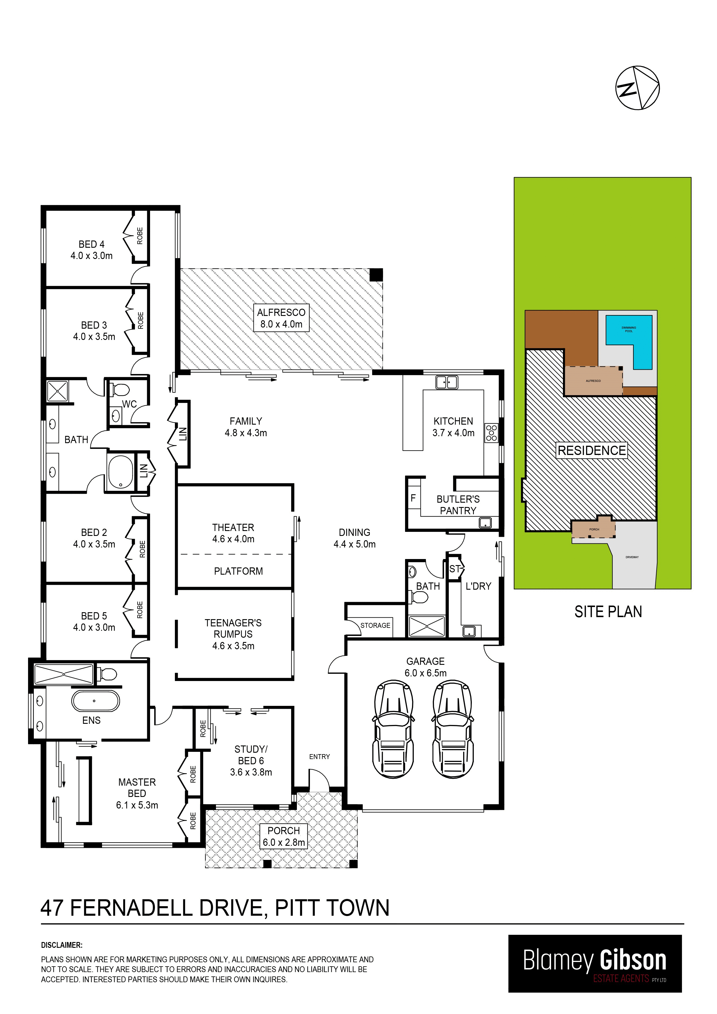 Bedrooms 2, 3, 4 and 5 are all queen plus sized rooms - bedrooms 3 and 4 have ensuite access to master bathroom. Bedroom 6 doubles as study or home office and all bedrooms have built-in robes
